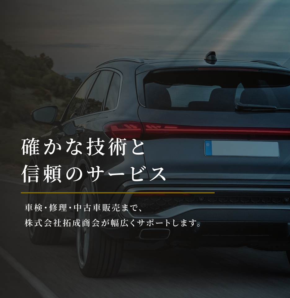 私たちは、車検・修理・中古車販売の専門家として、お客様に信頼されるサービスを提供しています。確かな技術と長年の経験を活かし、すべてのお客様に安心と満足をお届けすることをお約束します。